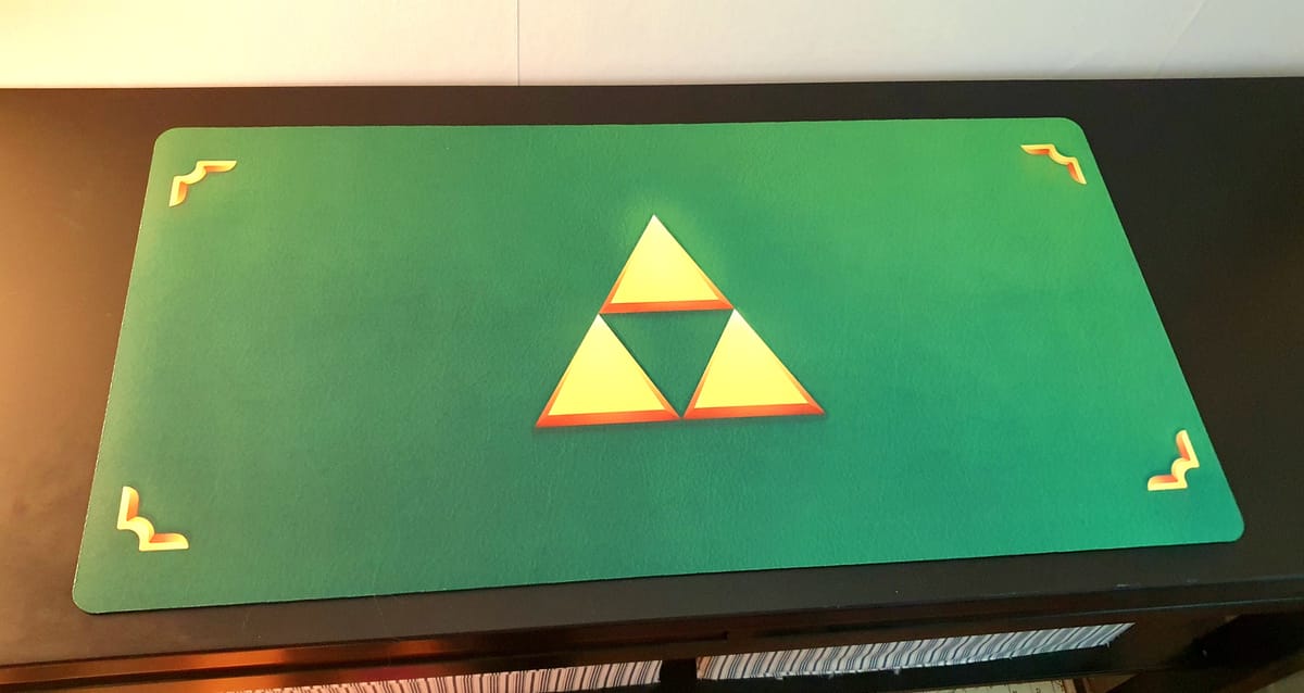 Egendesignad musmatta med inspirerat motiv från the Legend of Zelda. Stor musmatta som täcker stor del av skrivbordet och i hög kvalite. På bilden finns det två st, den i annonsen är den som är lite mindre. Storlek: 70x35 cm Material: Fabric with rubberized backside Art and design: Made be me (Custom Craft by Emelie) Printed by: PixelaNovaNL